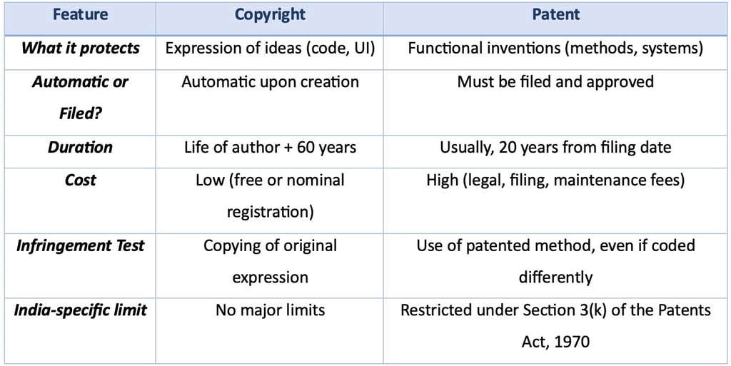 Patent vs. Copyright for Software: What Protects What?